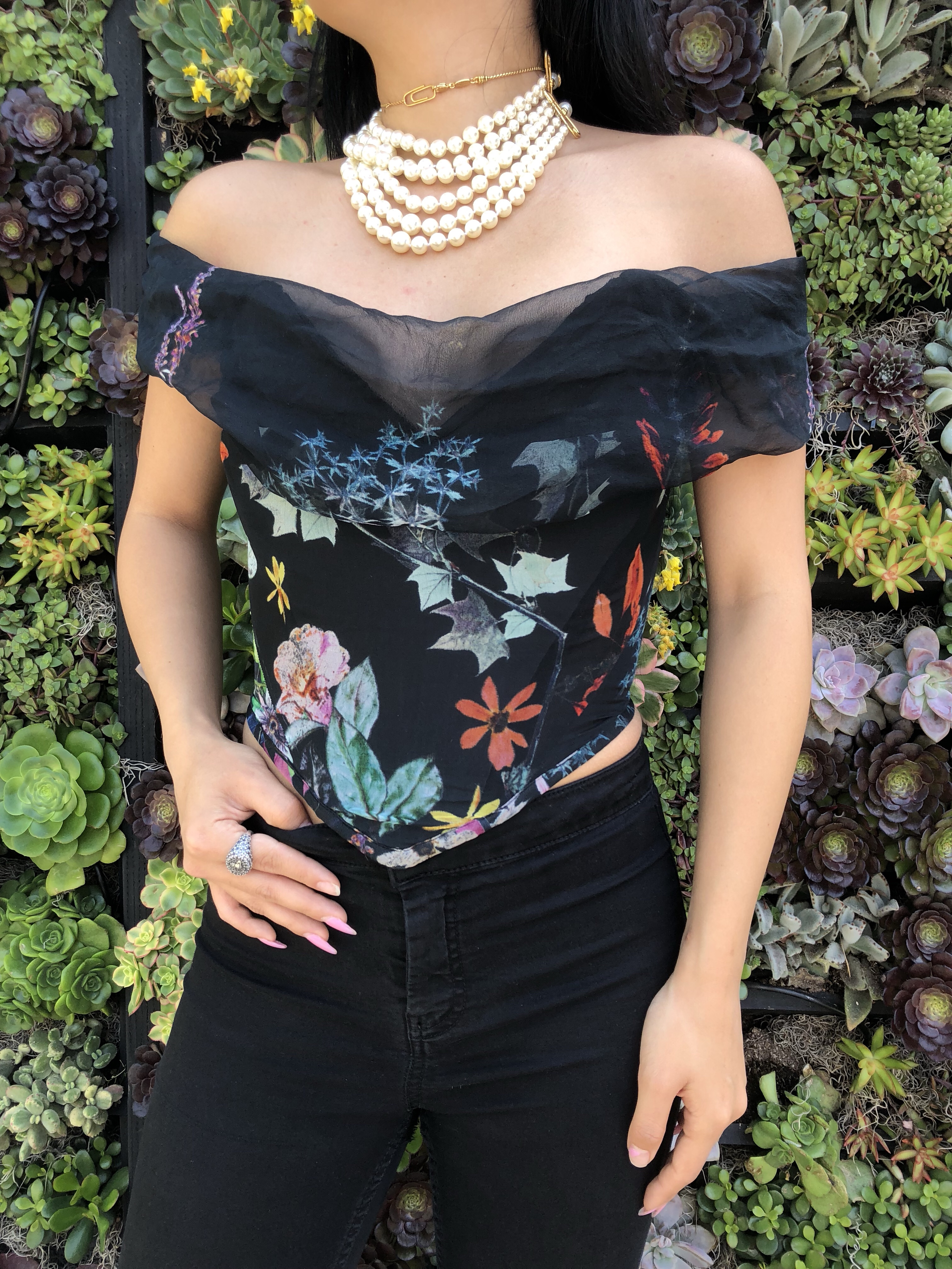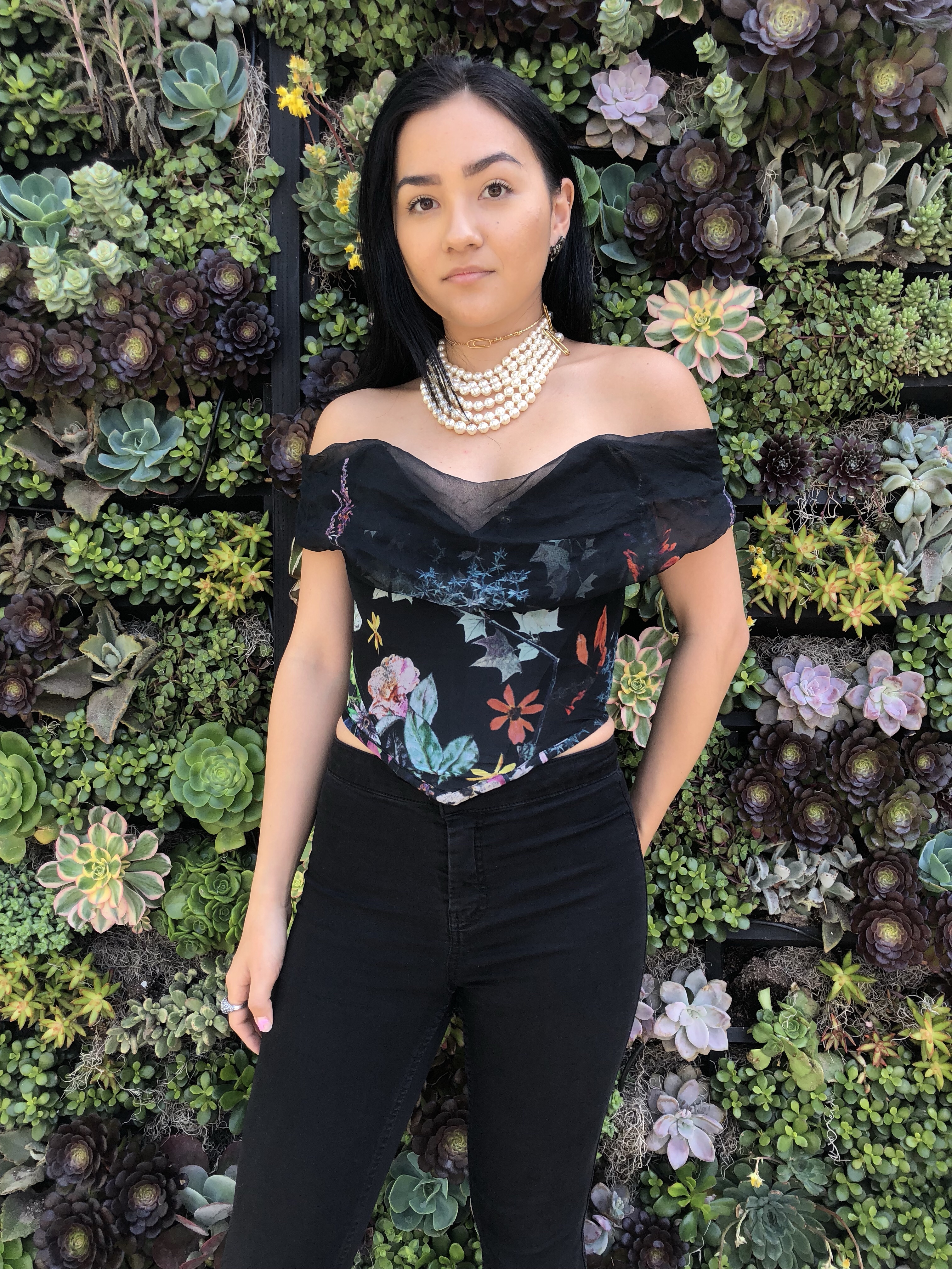 The first outfit was styled with this beautiful Vivienne Westwood corset from Red Label 99′. The detailing of this piece is phenomenal! The corset is layered with silk flowing around the chest area which makes it a very feminine and sexy piece.