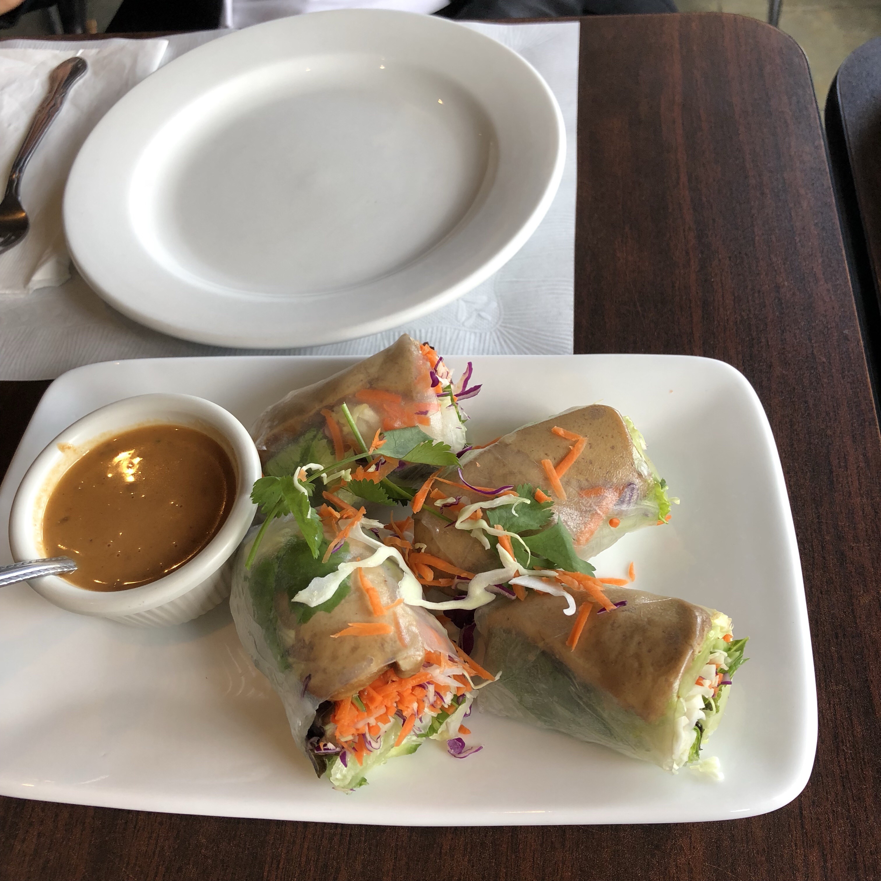 We ordered the fresh veggie rolls as our appetizer with peanut sauce and tofu as the “protein”. Let me tell you… it was amazing! Perfect little snack before the main course. I definitely recommend.