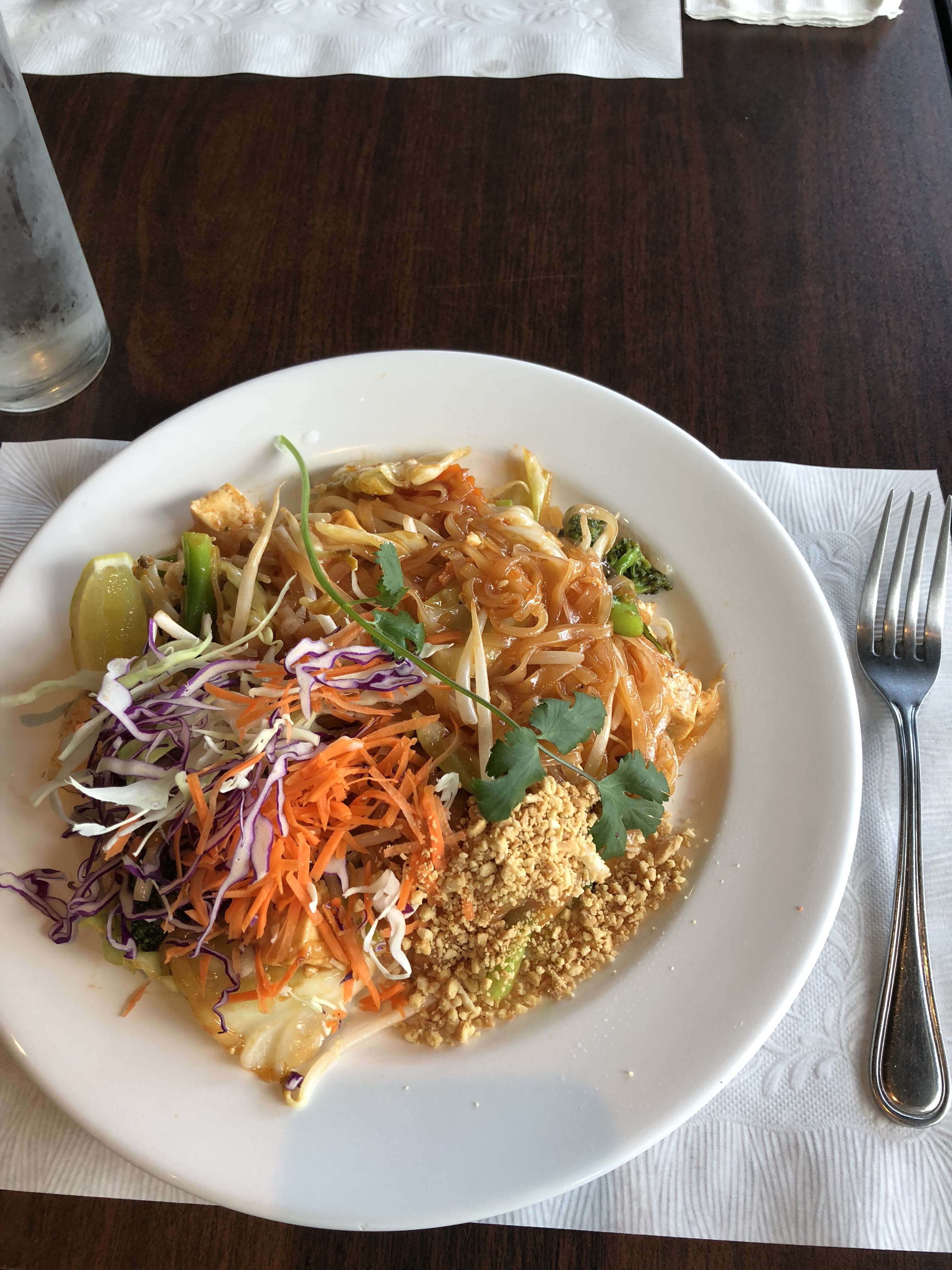 For the main dish – I ordered the pad thai. It originally comes with soy chicken but since i’m on a fake meat break at the moment – I substituted it with tofu. It came on a big ass plate for only $10! When food is delicious, cheap, AND comes in a big plate… you can’t complain at all.