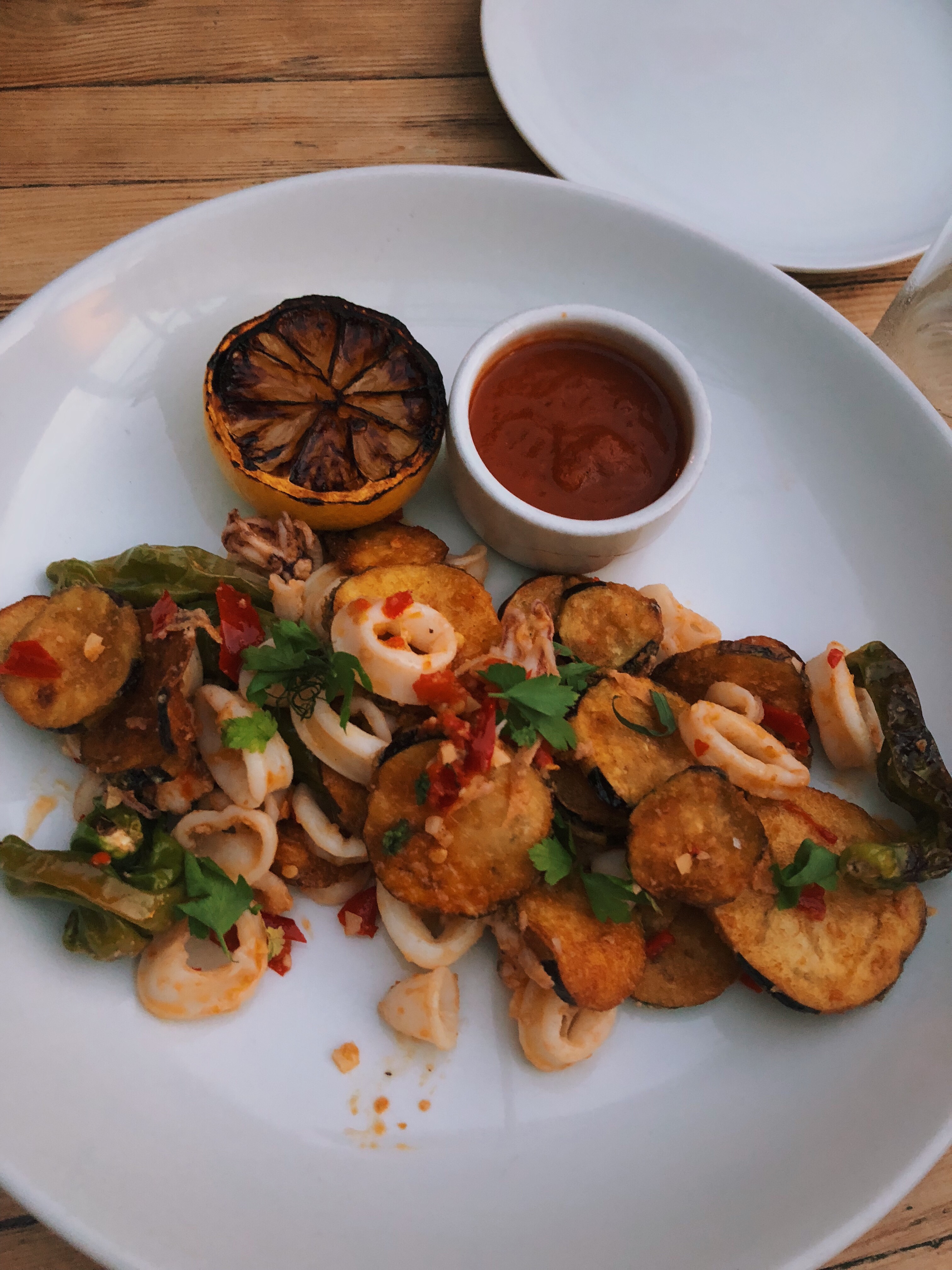 The appetizer was probably my favorite part. We ordered truffle fries and calamari. If you didn’t know, I’m a HUGE fan of truffle. I will love to have truffle everyday if I could! I love my squid too. I was honestly so happy that their style of calamari wasn’t fried because I wasn’t really down to have extremely fried food (since I ordered french fries as well). With the fried eggplant it was very fresh and great for a starter (with my drink as well). 🥂