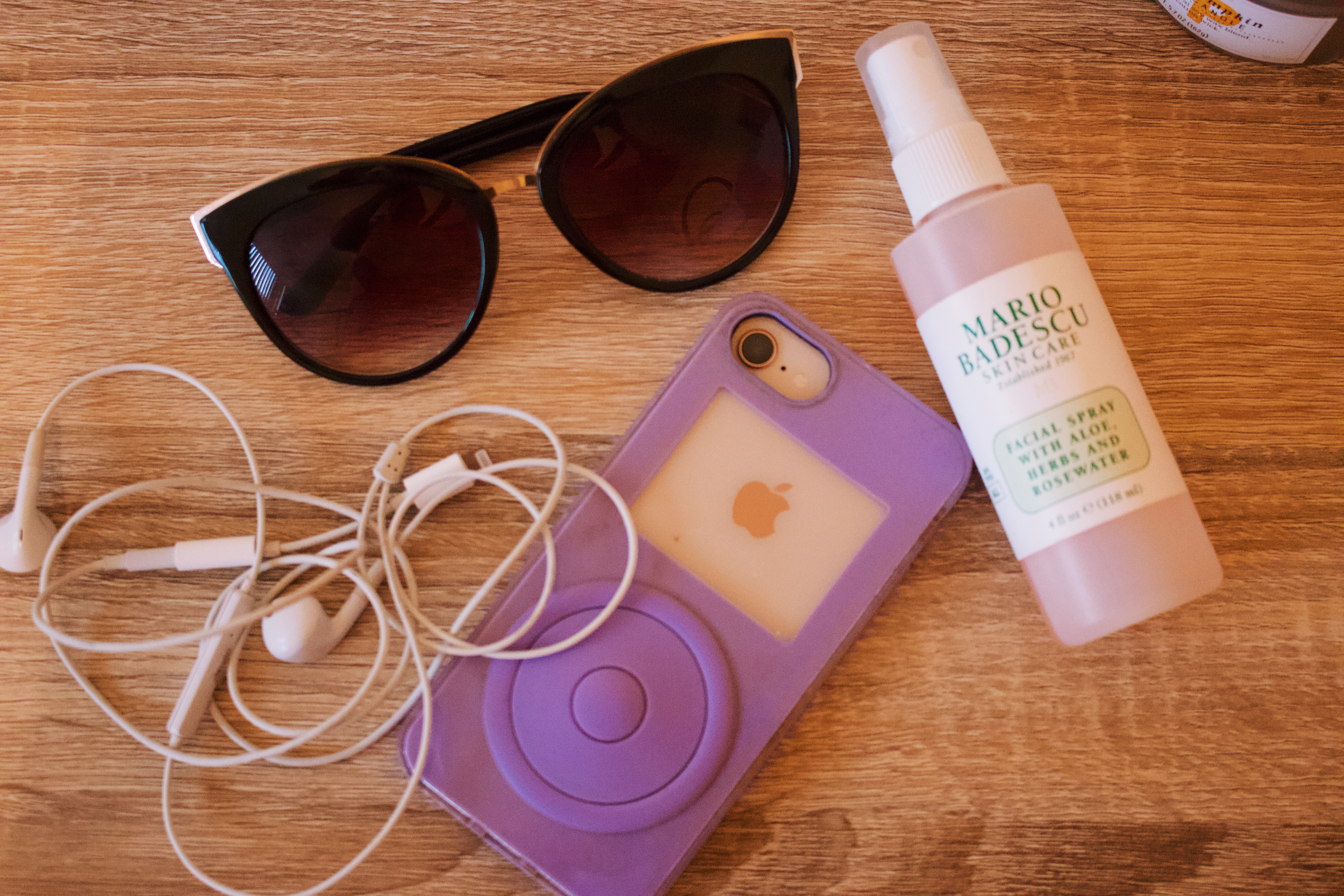 Los Angeles is always sunny so sunglasses are a must-have in your bag. Compared to the Hawaii sun – here in LA the sunlight literally stings my eyes. I can’t even look directly at the sky without the burning sensation in my pupils! Semi-exaggerated, I know. Anyways – You definitely seen me post about Mario Badescu’s rose water spray before, but here we are again. I carry this around with me daily because my skin is very sensitive and dry so this helps me freshen up. Phone and earphones are a must – they will always and forever be in my bag.
