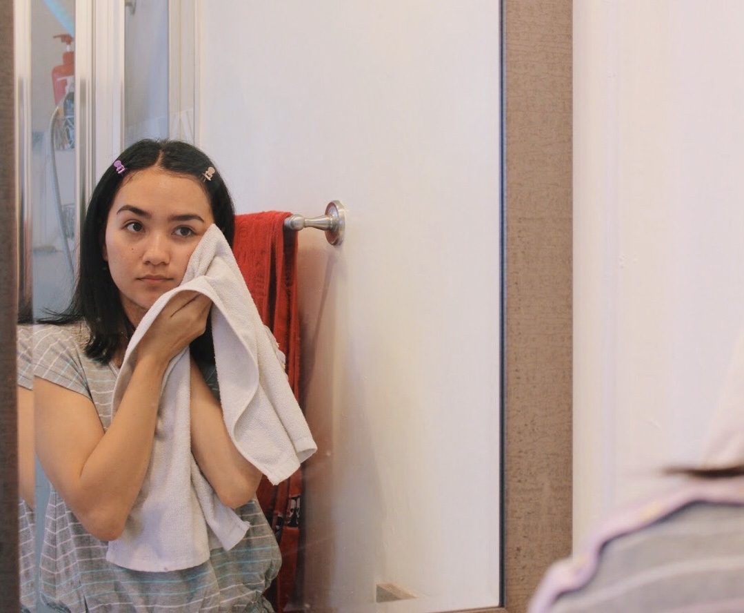 After gently rinsing off, I pat dry my face with a fresh towel. I usually change my face towel every 3-4 days.