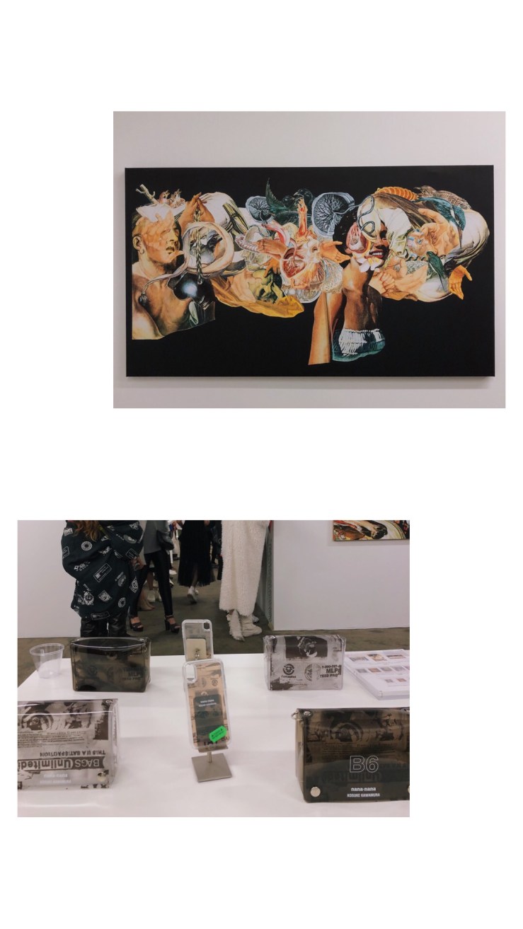 Kosuke Kawamura’s paintings were scattered around in another room, all so interesting and beautiful to look at. They are actually on sale throughout the pop up/exhibition – starting from $2,500 going up to $10,000. He has also designed B6 bags and phone cases with Nananana, which utilize Kawamura’s go-to collage art form and features a utilitarian graphic print.