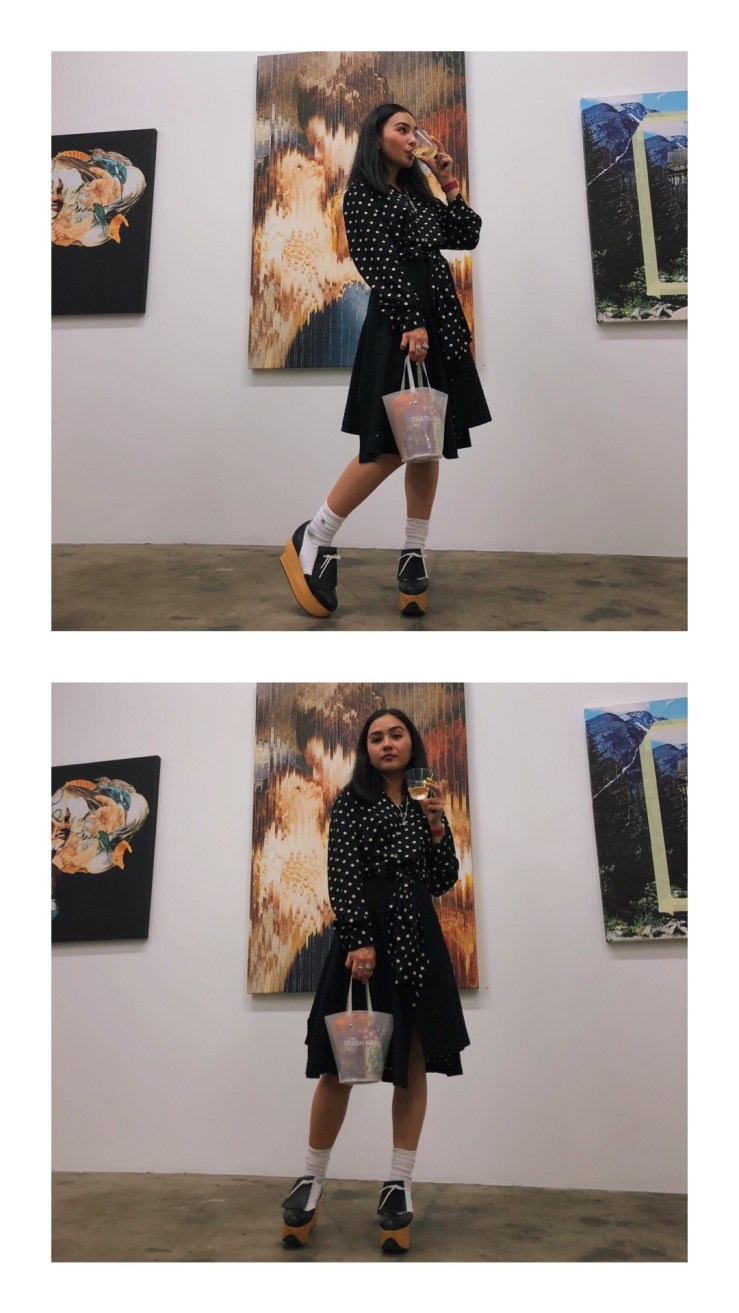 I went with a very Japanese look for the evening. I recently have been super into 1990’s Comme Des Garcons, and got my hands on this beautiful Comme Des Garcons 1990 long sleeve polka-dot print top that has an exaggerated tie upfront. I paired it with Comme Des Garcons 1991 black asymmetrical high waisted skirt. For my shoes, I went with Vivienne Westwood rocking horse golf platforms. A simple, yet fashionable black and white outfit – one of my favorites so far.