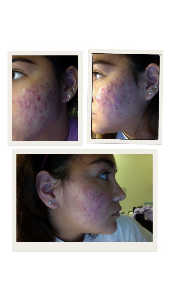 My mother took me to a few dermatologists – which they first put me on birth control to stabilize my hormones. I didn’t see a difference in my skin at all. They prescribed a few different topical treatments, one for the morning and one for the night. In the morning I applied Aczone 5%, which is a dapsone gel. I don’t remember the name of the brand that I applied at night, but it was a stronger topical. The two topicals somewhat helped but didn’t help lessen the amount of cystic acne I had on my cheeks. My mother ordered me Proactive. I tried it out for a few weeks and felt like there was a positive change, but my skin, unfortunately, got even worse. I started to become more depressed and began losing hope.